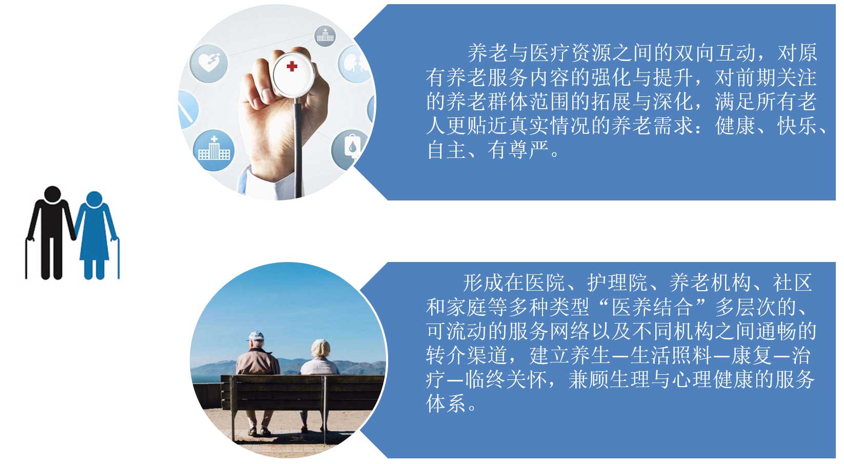 從調研情況看,我們認為松散型模式基本屬于“搞形式”,醫療機構和養老機構難以實質性合作,更難市場化運作;醫養結合必須運用“一體化”發展模式。